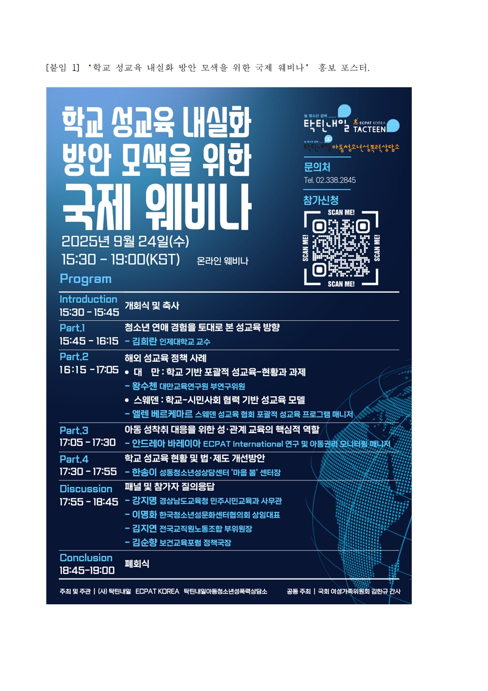 학교 성교육 내실화 방안 모색을 위한 국제 웨비나 개최